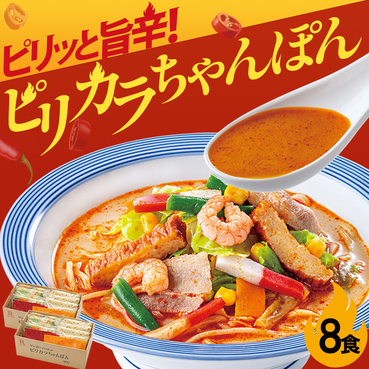 特製ピリカラペーストが食欲を誘う究極の逸品です。ぜひお試しください。内容 ピリカラちゃんぽん8食 箱サイズ 274mm×154mm×108mm ×2箱 賞味期限 製造日より366日 保存方法 -18℃以下で保管してください。 製造者 株式会社リンガーハット