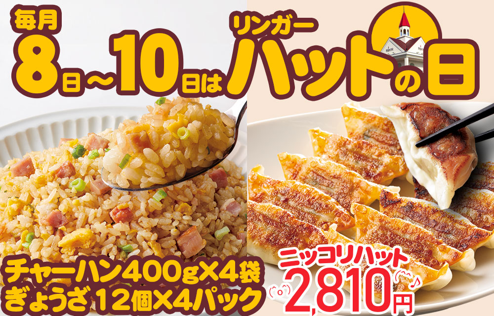 毎月8日~10日はハットの日!チャーハン4袋&ぎょうざ4パックが2810円送料無料!