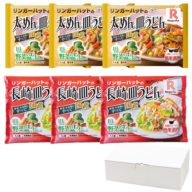 内容 太めん皿うどん3食・長崎皿うどん3食 箱サイズ 356mm×233mm×165mm 賞味期限 製造日より366日 保存方法 -18℃以下で保管してください。 製造者 株式会社リンガーハット 〒850-0831 長崎県長崎市鍛冶屋町6-50